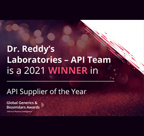 Dr. Reddy's API team is a 2021 winner in - API Supplier of the year at Global generics & Biosimilars awards